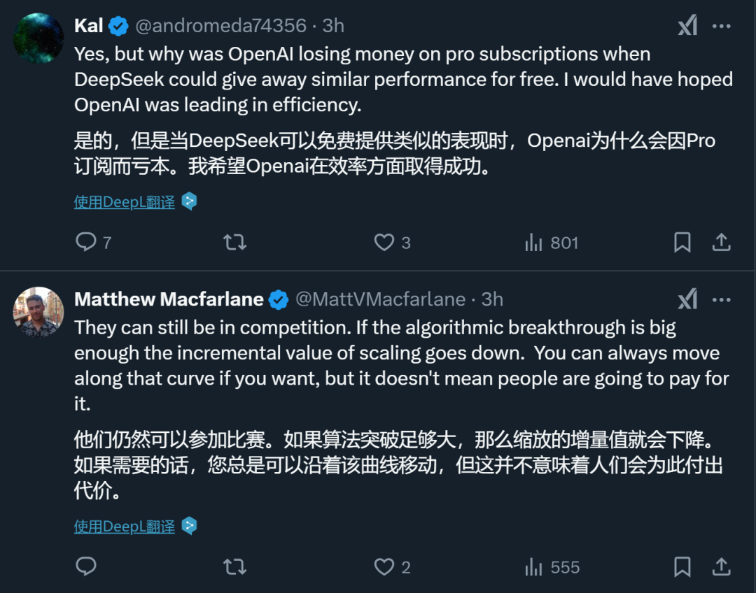 此外,OpenAI研究科学家Noam Brown也在努力弱化外界对OpenAI和DeepSeek的对比,但大家似乎并不买单。