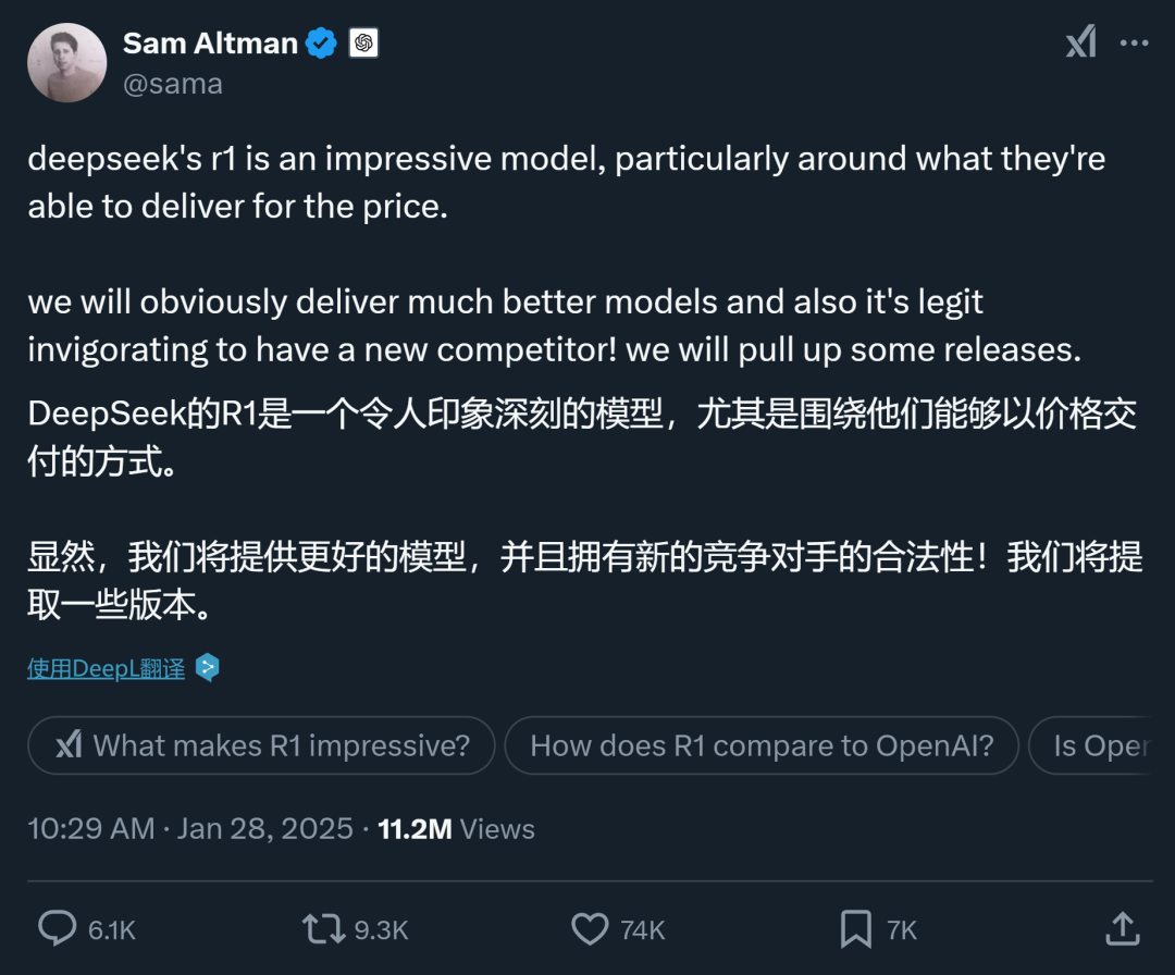 这些成就得到了包括 Sam Altman 在内的 AI 领军人物的肯定。