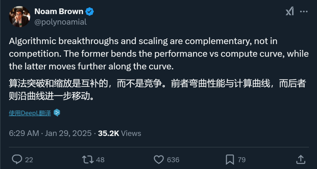不过,我认为外界的反应有些过度夸大,特别是在成本方面的说法。拥有两个范式(预训练和推理)意味着我们可以在两个维度而不是一个维度(低成本)上优化某项能力。