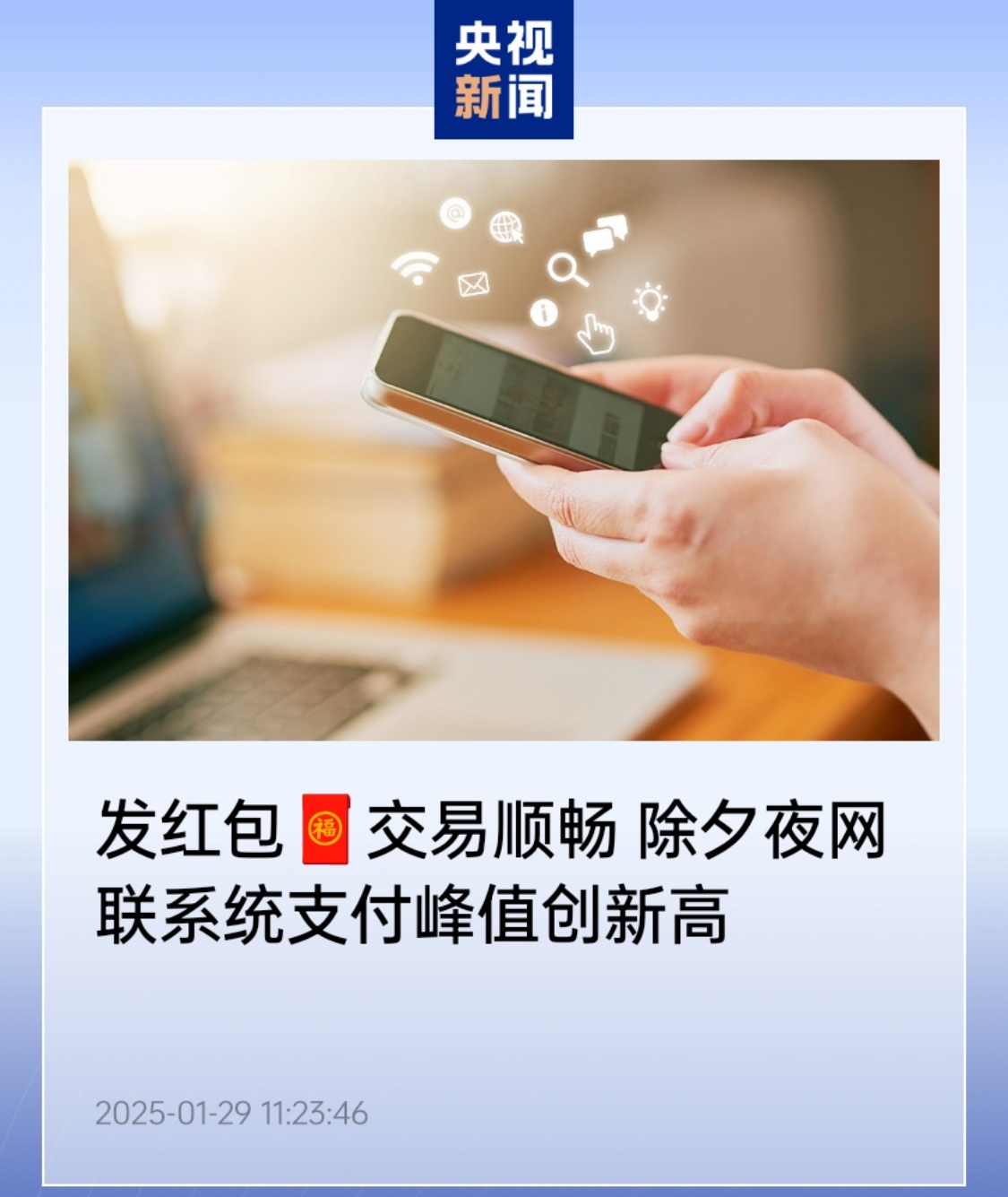 1 月 29 日消息,据央视新闻报道,今年除夕夜,网联清算公司和中国银联处理的全行业网络支付峰值为每秒 10.9 万笔,较去年增长 4.61%,创历史新高。