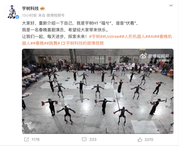 宇树科技:春晚表演机器人为Unitree H1 谐音“伏羲”