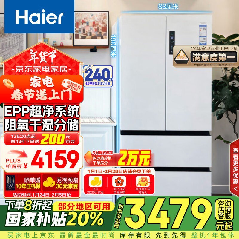 海尔超薄嵌入式冰箱3458元到手