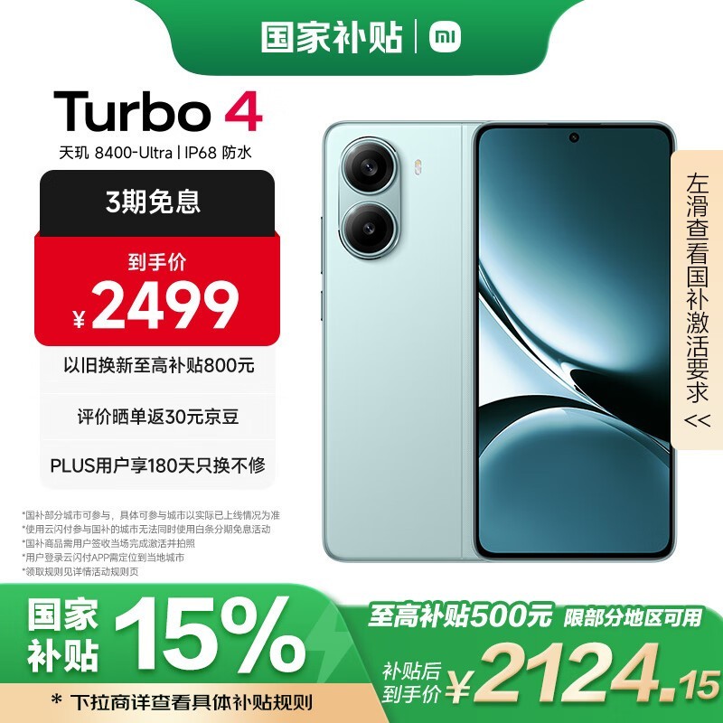 小米新品上市!红米小米 REDMI Turbo 4到手价2077元