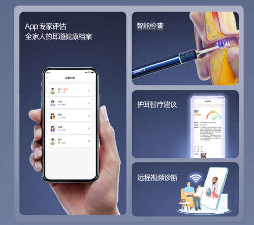 还有一点,在APP内还有专家在线诊断、远程视频诊断、护耳智疗建议以及智能检查等功能,可以建立全家人的耳道健康档案,定期检查,给家人带来更加专业的护耳保障。