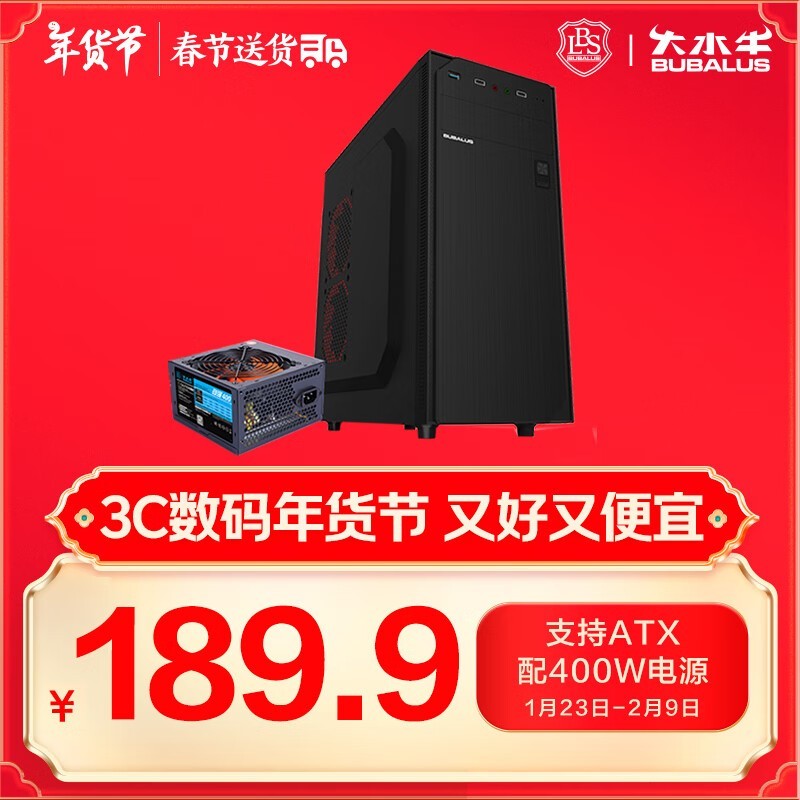 大水牛机箱特价189元 台式主机电脑机箱电源套装
