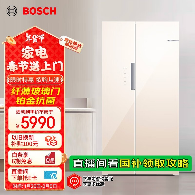 博世超薄对开门冰箱大降价了!5960元带回家!