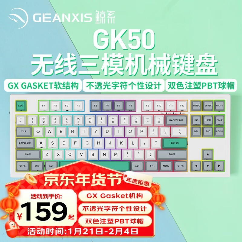 鲸系GEANXIS GK50多模无线机械键盘超低价110元到手