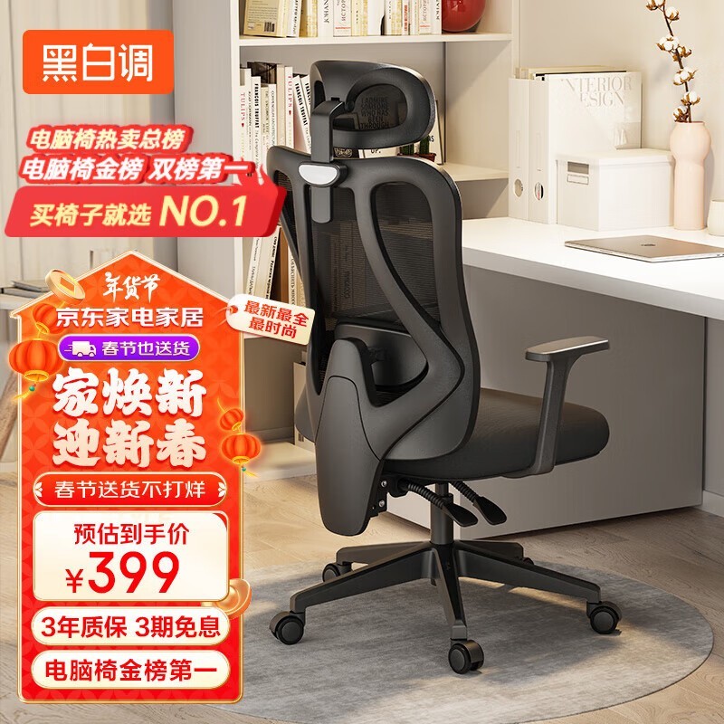 黑白调P1人体工学电脑椅限时特惠305元