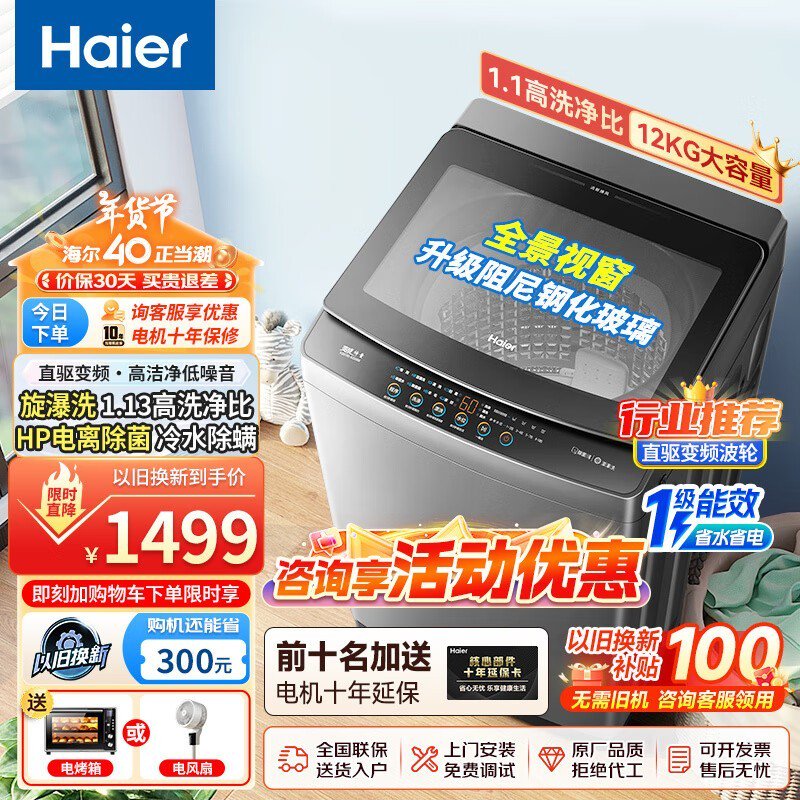 海尔XQB120-BZ628洗衣机:大容量、直驱变频,纳米净洗除菌,两千多元享受高端家居生活