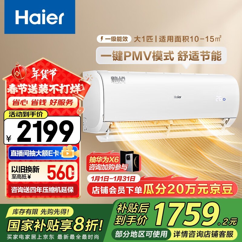 海尔静悦系列空调到手价2036元