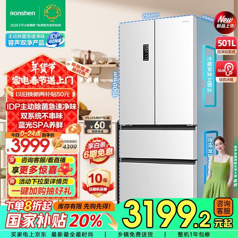 容声IDP双净501Pro 法式多门冰箱 一级能效 双循环双系统