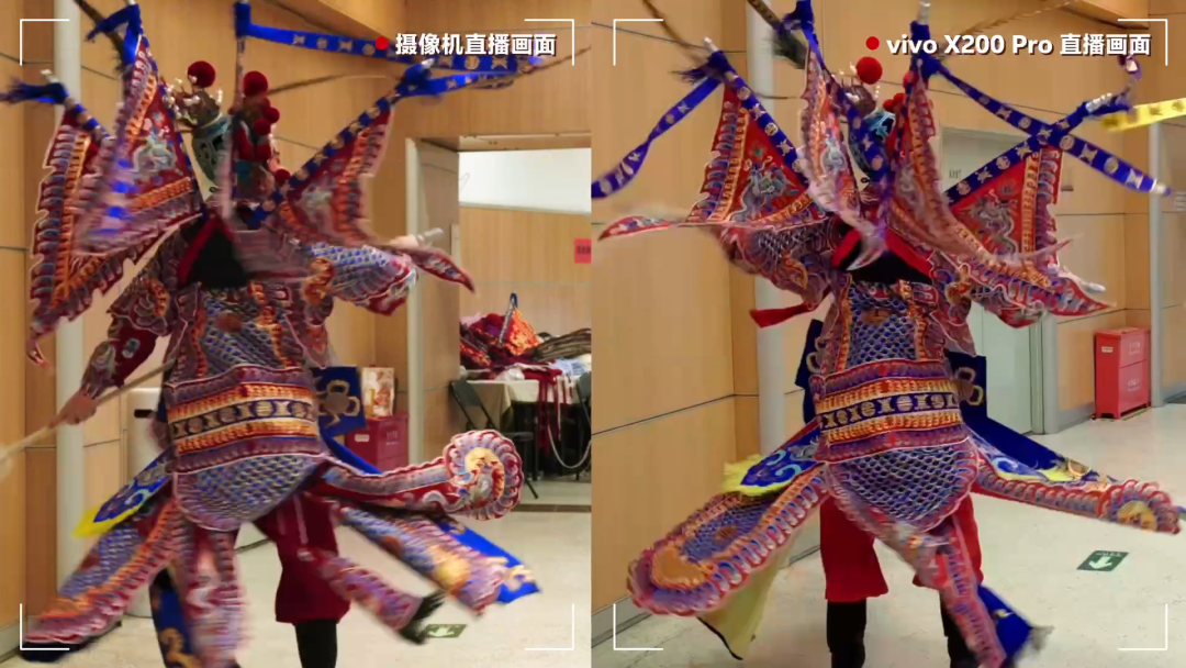 在春晚彩排的探班vlog中就可以看到,传统摄像师扛着「麒麟臂套餐」挥汗如雨时,隔壁举着vivo X200 Pro的朱广权不仅能轻松完成复杂的运镜,拍出来的画面还满足了直播所需的画质超清、不抖不虚、色彩鲜艳等特质。