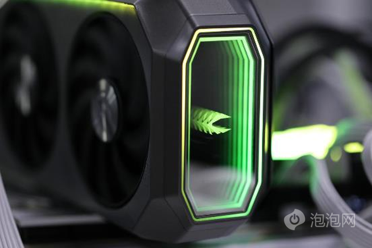 索泰 RTX 5080 AMP显卡的顶部设计了一条贯穿式的RGB灯带,并且和显卡尾部的无限镜相结合,点亮之后视觉效果非常不错,为玩家营造非常不错的电竞氛围。