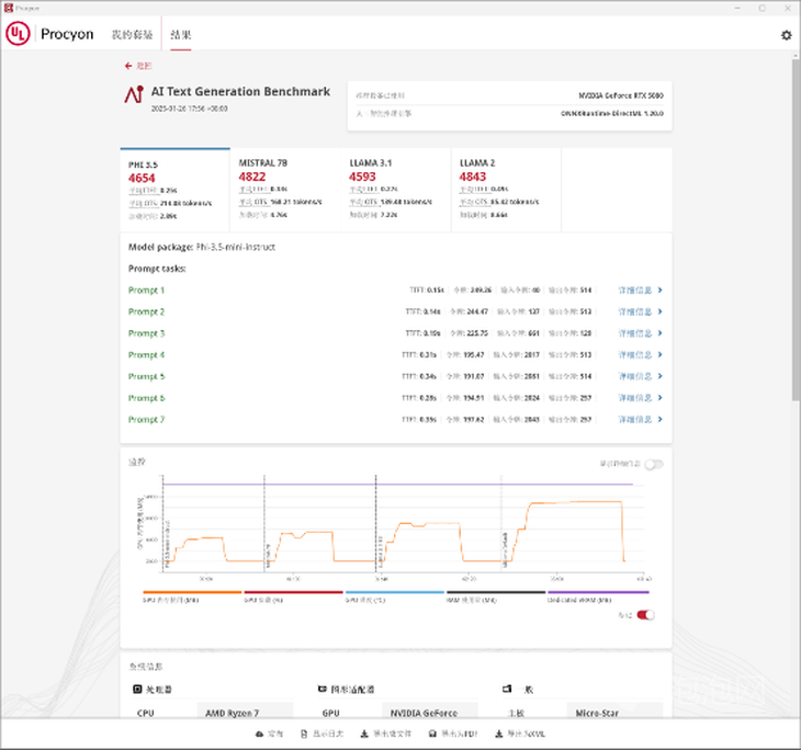 AI对话测试如上图所示,在进行AI文字对话的时候,不论是生成速度还是响应速度,RTX 5080 AMP都能提供强大的支持,对于本地大模型训练上,能够提供更多的助力。