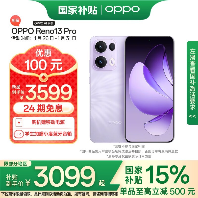 OPPO Reno13 Pro 5G手机到手价2960元