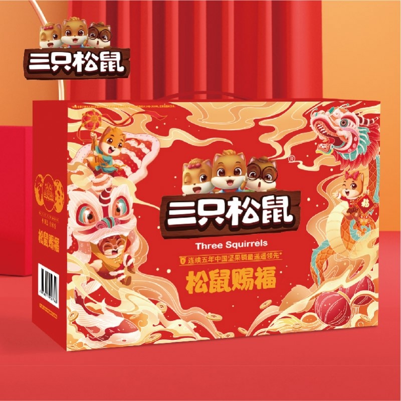 针对不同地域春节送礼习俗属性,三只松鼠还发力区域定制礼盒,如海鸭蛋蛋黄酥双提礼等;线下商超,三只松鼠打造以瓜子花生为核心代表的9.9元集约化陈列专区带动年货日销品持续增长,目前已涵盖上万家终端陈列网点。