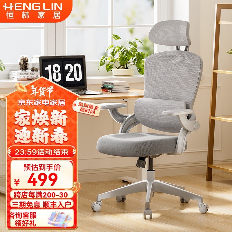 恒林逆袭者人体工学椅家用电脑椅分区撑腰护脊舒适久办公转椅459