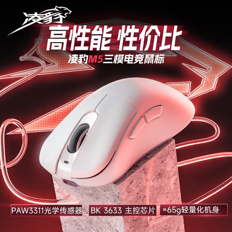 凌豹M1Pro/M5无线蓝牙有线三模游戏鼠标到手价62.65元