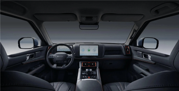 内饰方面,SHARK“鲨鱼”延续了豹5的设计风格,采用双排5座布局,配备10.25英寸全液晶仪表、12.8英寸自适应旋转中控屏、12英寸W-HUD抬头显示功能,以及全新样式的四辐方向盘,车内加入橙色元素点缀,副仪表台区域与豹5保持一致,并提供最大功率50瓦的手机无线充电面板。
