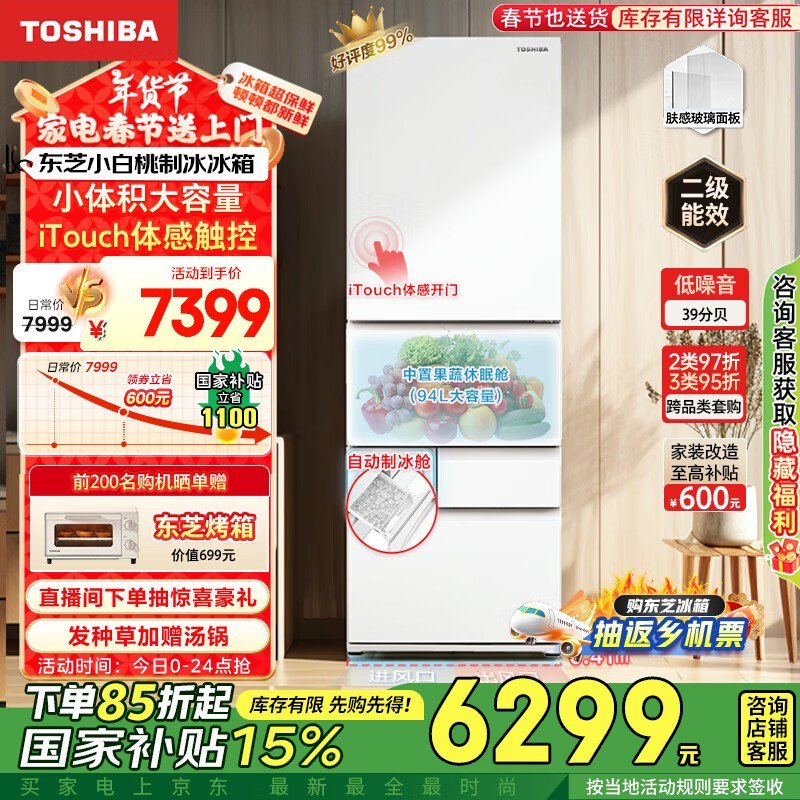 东芝 GR-RM429WE-PG2B3 风冷多门冰箱到手价6299元