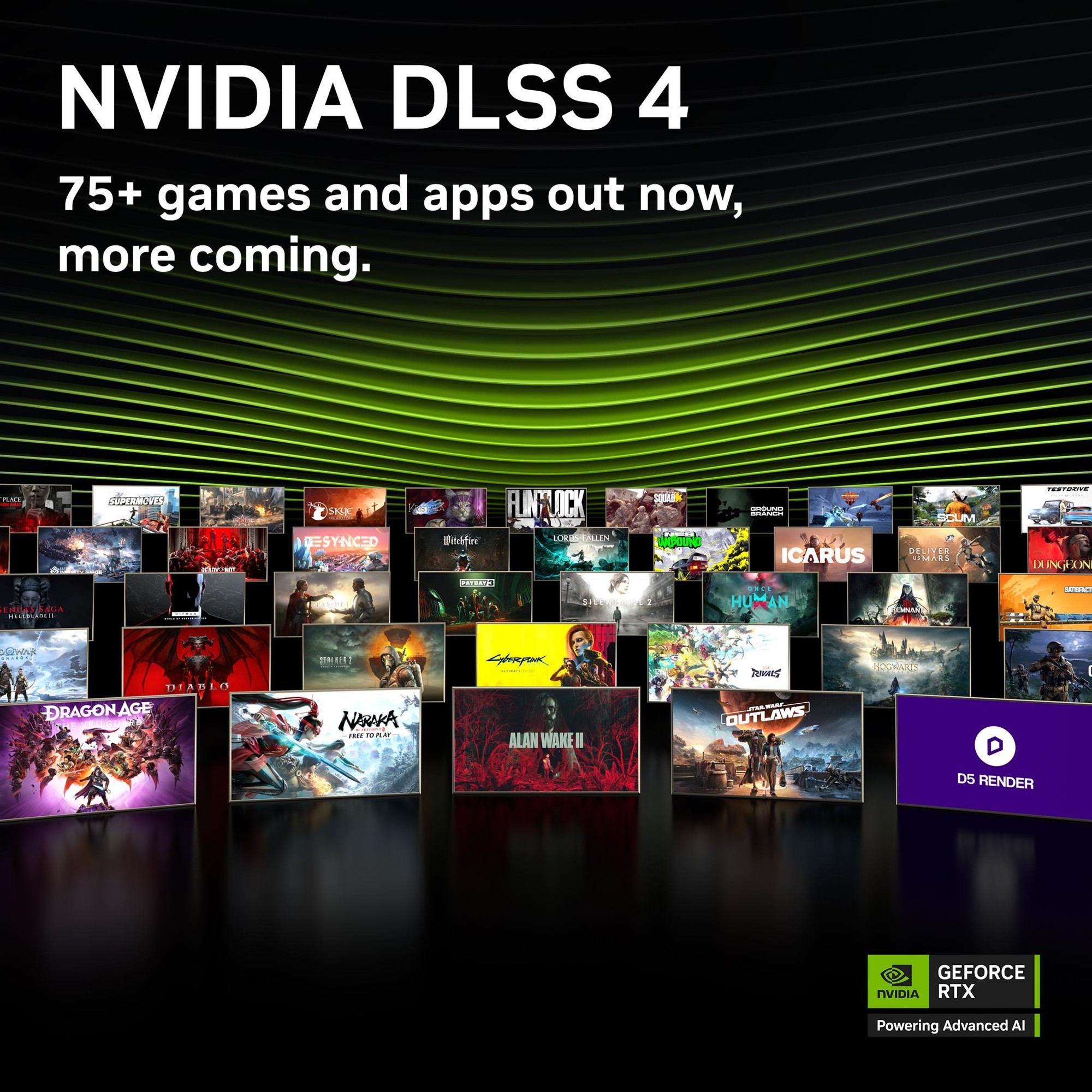 DLSS4多帧生成现已支持超过75款游戏和应用,更多游戏和应用支持其他DLSS增强功能: