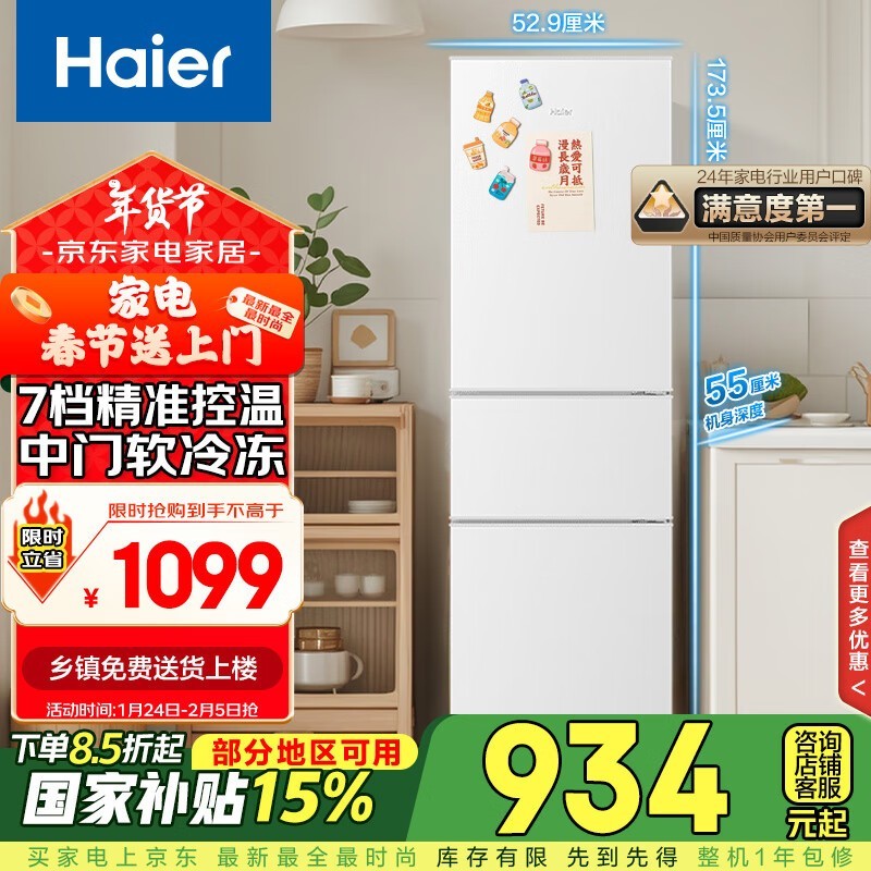 海尔三门冰箱887元入手 10年保修性能稳定