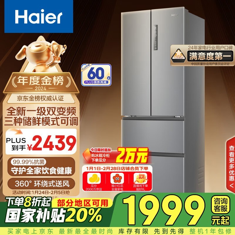 海尔 BCD-335WLHFD9DS9 风冷无霜多门冰箱 335L 总会有的