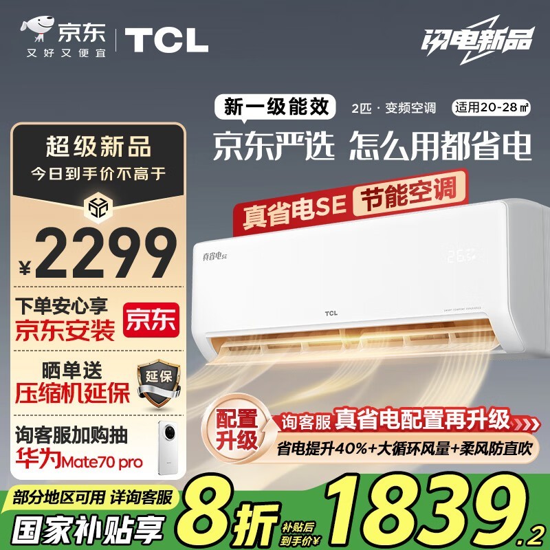 TCL 真省电SE系列空调1831元入手,能效等级一级