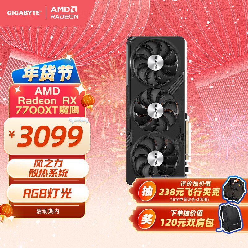 技嘉 AMD Radeon RX 7700 XT GAMING OC 显卡3099元入手