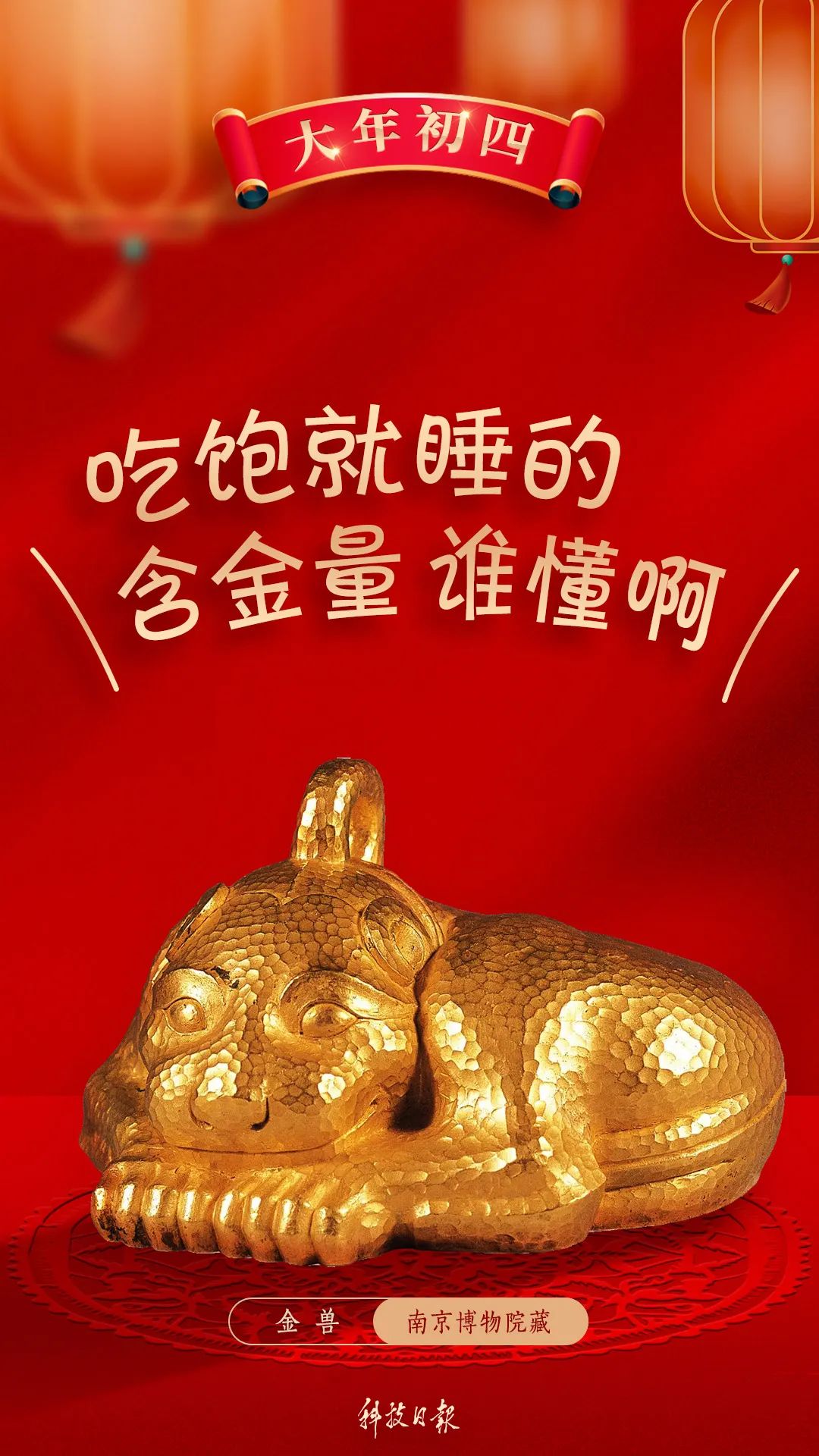屈腰团身、双目有神、嘴角微翘、通体金黄,别看它长相如此“呆萌”,实际上可是个“重量级”嘉宾。