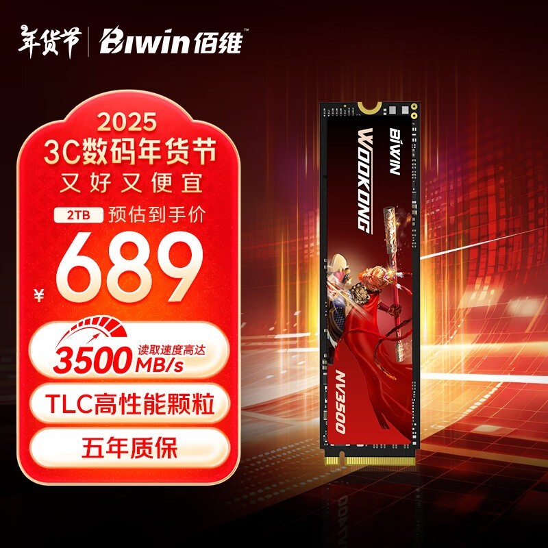 佰维BIWIN NV3500悟空NVMe M.2固态硬盘2TB只要689元