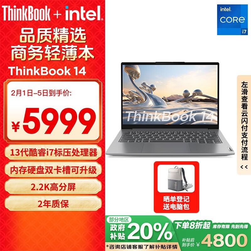 ThinkBook 14 2023款高性能轻薄笔记本电脑仅售4767元
