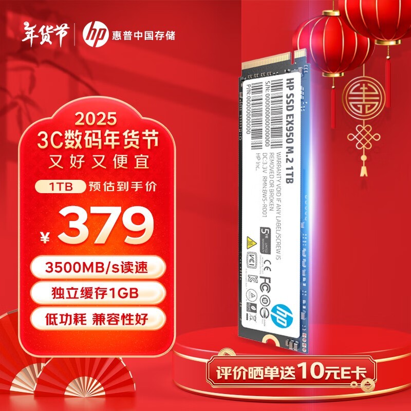 惠普1TB SSD固态硬盘京东限时特惠379元