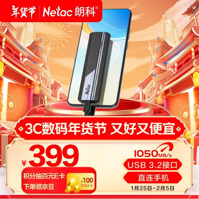 朗科ZX10移动硬盘到手价374元,超值优惠