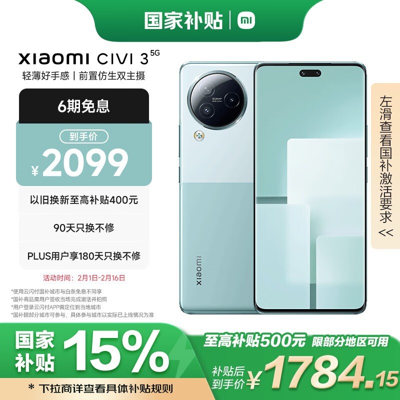 小米Civi 3手机京东优惠价格1758元