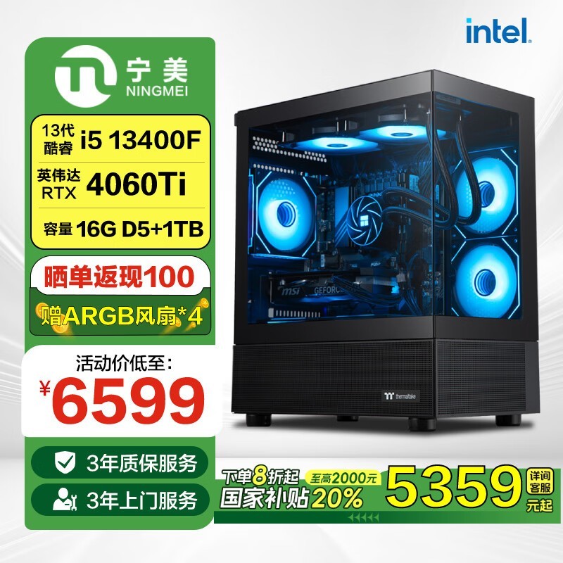i5 13400F/RTX4060Ti电竞游戏主机仅售6699元
