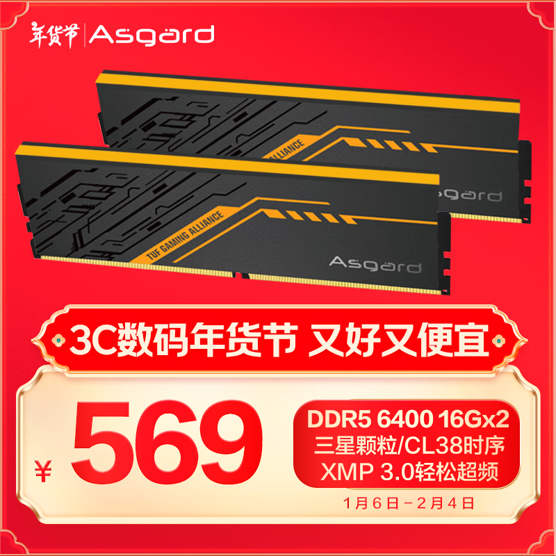 阿斯加特 32GB(16Gx2)套装 DDR5 6400 台式机内存条 549元