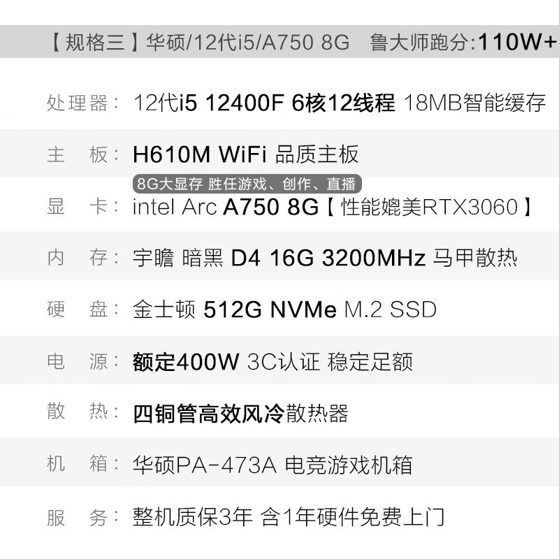 华硕i5电竞主机3999元抢购价 1700元优惠史低价