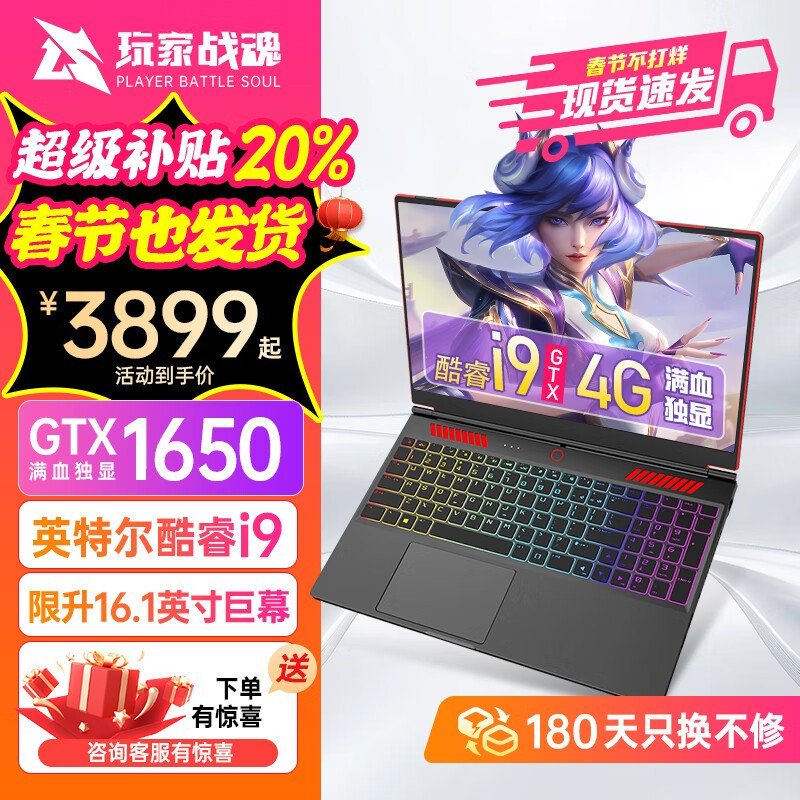 英特尔酷睿i9满血游戏本165Hz高刷3899元