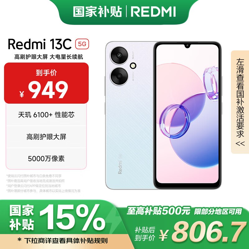 红米13C 5G手机官方旗舰店促销中:价格实惠 性能强劲