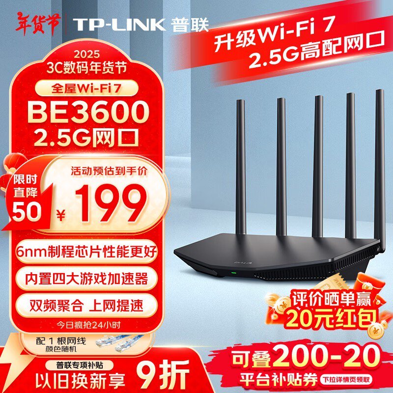 TP-LINK BE3600千兆无线路由器,满减177元