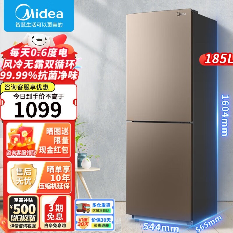 租房族小家庭适用!美的双门冰箱仅1099元