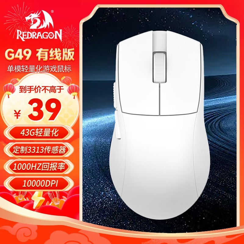 红龙 G49游戏鼠标 29元抢购!中小手适用型有线电竞鼠标