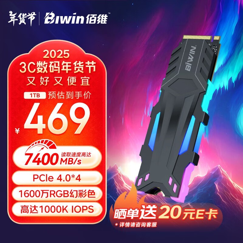 佰维悟空1TB固态硬盘促销中 原价599元到手469元