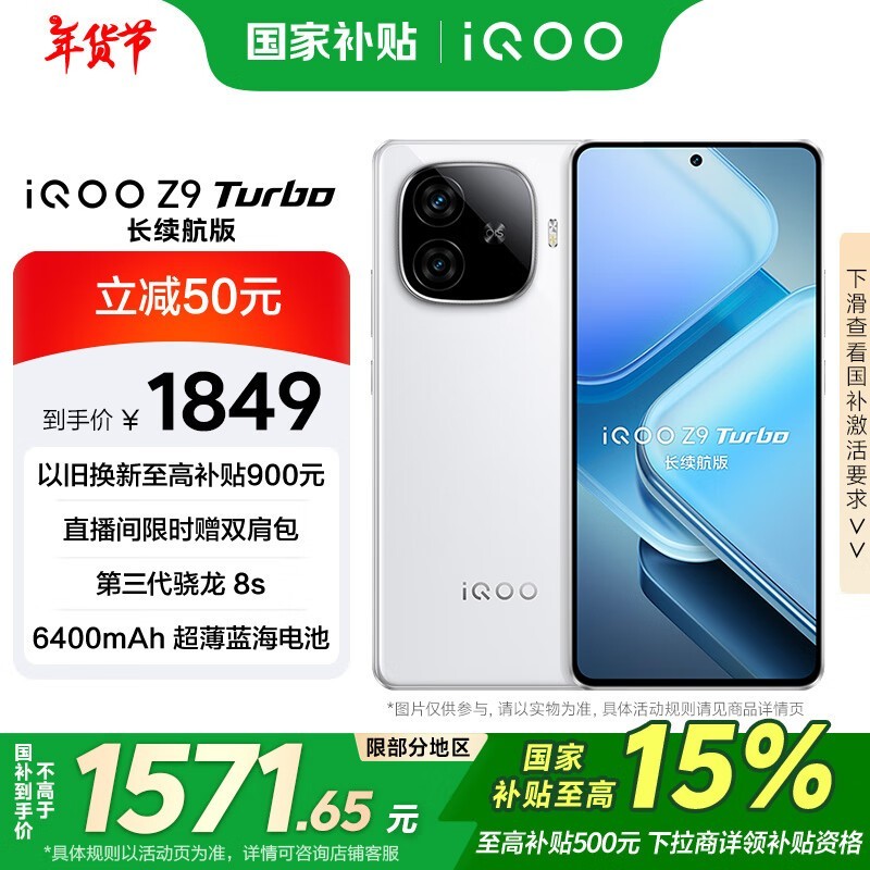 iQOO Z9 Turbo长续航版 限时优惠1512元!