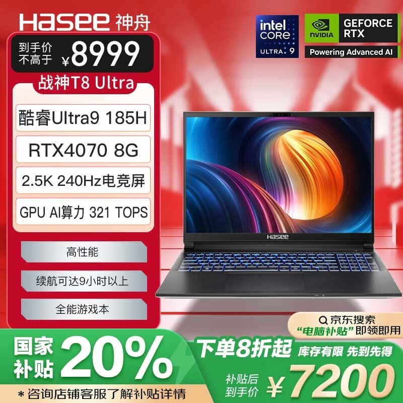 神舟战神T8游戏本价格大跳水 8954入手仅400元