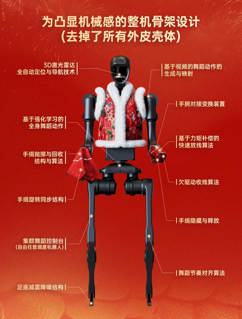 大家可能觉得机器人的形象很机械呆板(只有骨架,去掉皮肤),这其实是为了与舞蹈艺术真人产生更多反差,而特别设计的。这种反差不仅没有让我们的表演显得突兀,反而让整个表演更加生动有趣,更突出,让人眼前一亮。