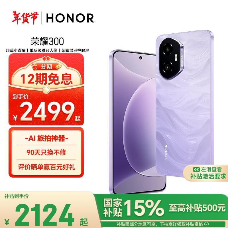 荣耀 HONOR 300 5G手机京东促销中 原价2499到手价2107.15