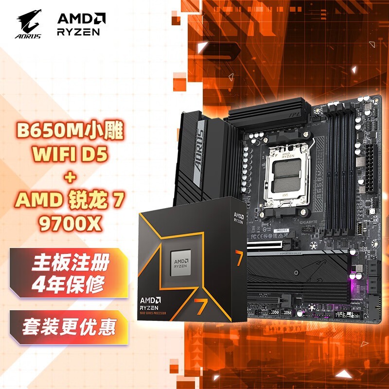 技嘉B650M AORUS ELITE AX主板+AMD锐龙7 9700X板U套装限时优惠