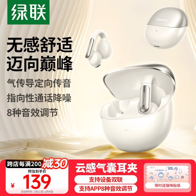 绿联 HiTune S5 真无线蓝牙耳机优惠139元!骨传导技术,运动跑步适用
